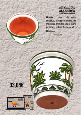 Maceta con decorado andaluz, pintada a mano, de medidas grandes, ideal para jardines, patios, hoteles, etc. Medidas: 30 × 27 cm 33,04€