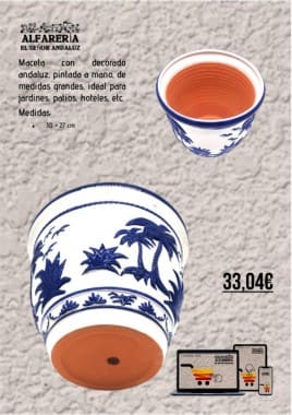 Maceta con decorado andaluz, pintada a mano, de medidas grandes, ideal para jardines, patios, hoteles, etc. Medidas: 30 × 27 cm 33,04€