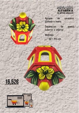 Aplique de cerámica, pintado a mano, Decoración de pared: Exterior e interior. Medidas: 30 × 14.5 cm 16,52€