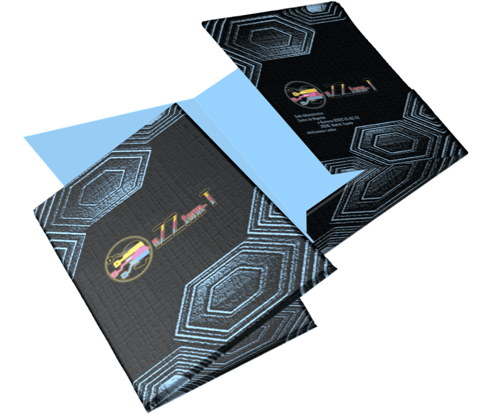 Con acabados exclusivos, puedes hacer que tus carpetas sean todavía más atractivas. Adicionalmente, ofrecemos todo el espectro de opciones de la impresión digital moderna, incluso colores especiales, como oro y plata.